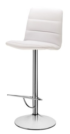 Banqueta alta, giratória, totalmente estofada, com estrutura em alumínio, aço inox (pé estrela) ou cromada (pé redondo). Altura até assento: 700mm. Altura: 98 cm Largura: 40 cm Profundidade: 49 cm