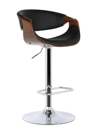 Banqueta giratória com ajuste de altura.Estrutura do assento, braços e encosto em madeira alamo com estofamento revestido em poliuretano (PU) ou tecido.