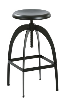 Banqueta giratória com regulagem de altura • Assento em metal • Base em metal pintada a pó. Largura 36 Prof. 36 Altura 67 a 86 Peso máx. sup. 120