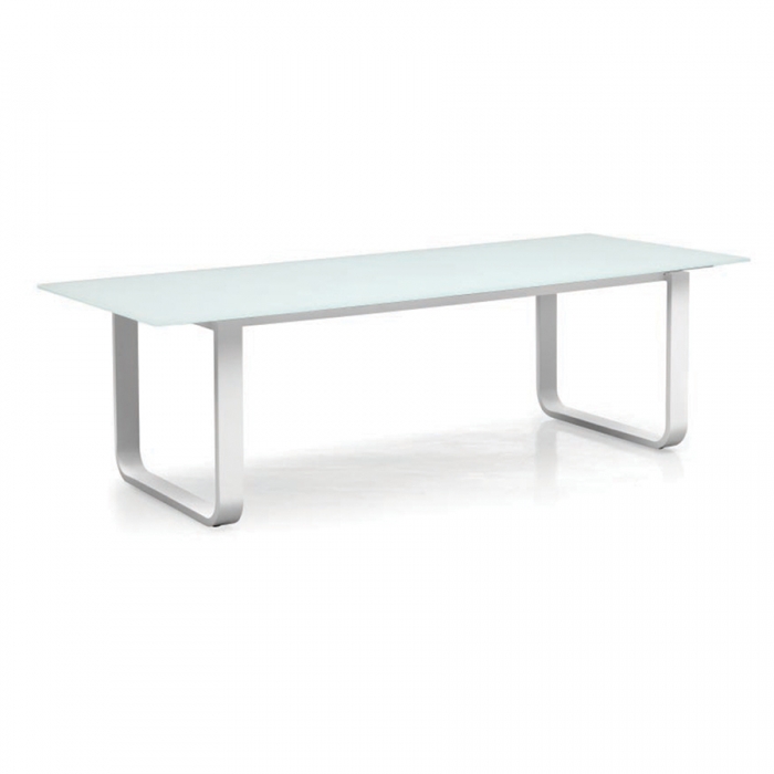 Mesa de jantar Dallas com estrutura e acabamento em alumínio. Acompanha vidro. Dimensões: Largura:2,80 m Profundidade:1,10 m Altura:0,75 cm Cores:
