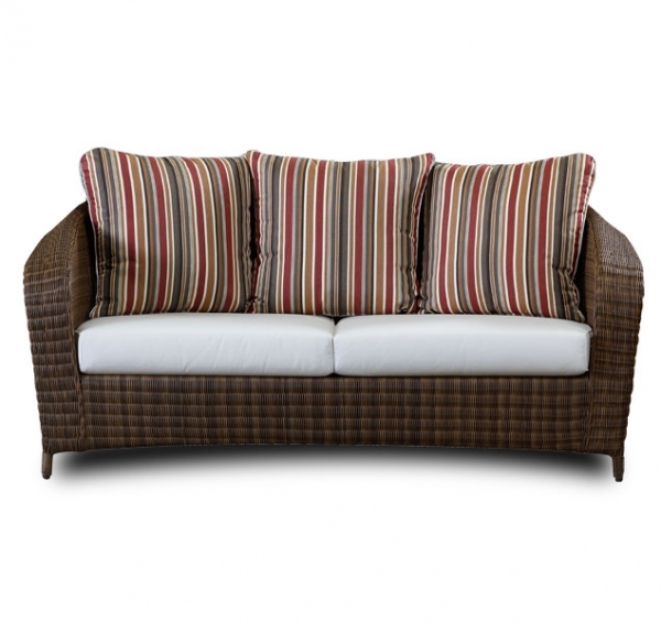 Sofá de 3 lugares com estrutura em alumínio, totalmente revestido em fibra sintética, com assento estofado e almofadas. Dimensões: Largura: 1,84cm Altura: 89 cm Profundidade: 83cm Cores: