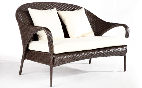 Armação de alumínio e cobertura trançada em fibra de poliestireno. Acompanha almofada revestida de tecido polyester 314g/m². Dimensões: Largura máx.: 1,46 m Profundidade: 92 cm Altura: 94 cm Cores: