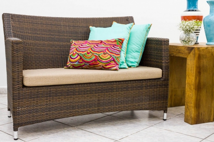 Sofá de 2 lugares revestido em fibra sintética, assento impermeabilizado. Disponível em outras cores. Dimensões: Largura: 1,19 m Altura: 80 cm Profundidade: 58 cm Cores: